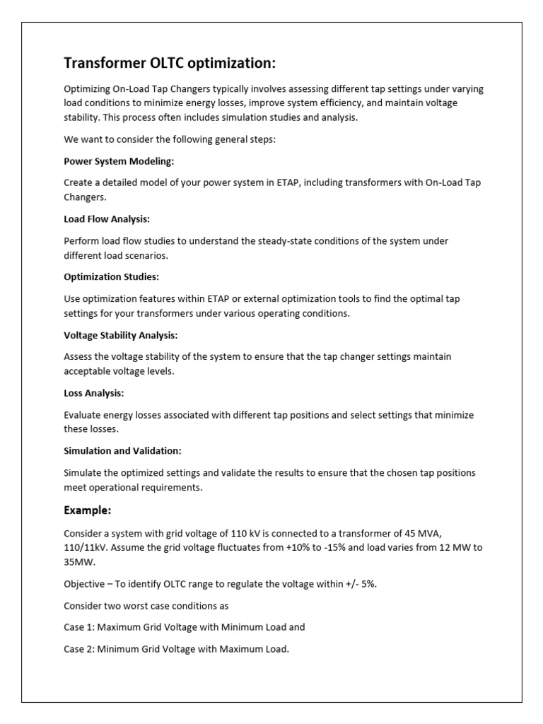 Optimizing On-Load Tap Changers typically involves assessing different tap settings under varying