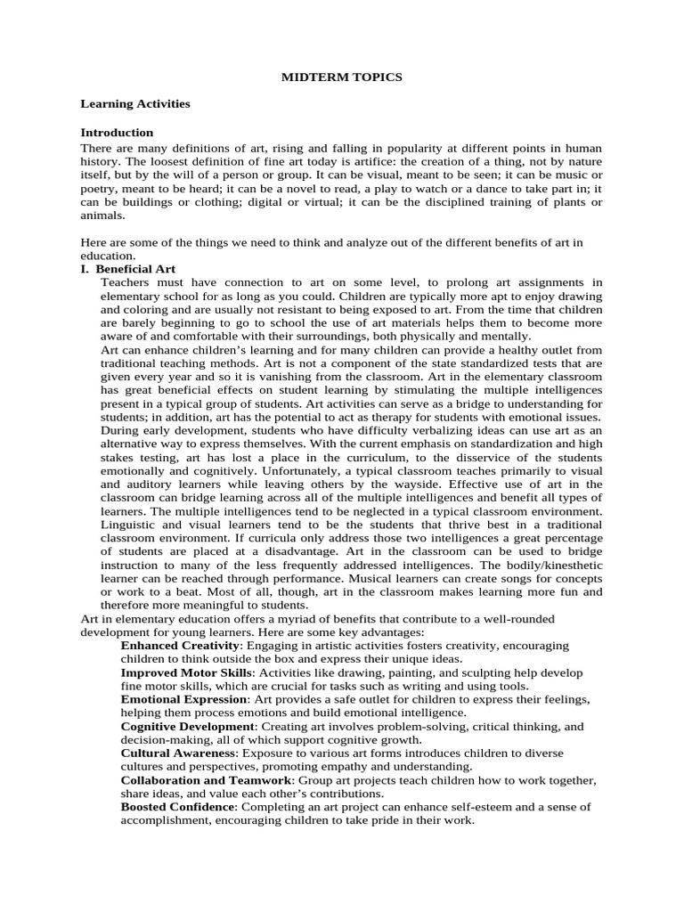 Overall, integrating art into elementary education enriches the learning experience, supporting
