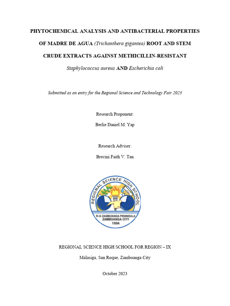 found in Madre de agua (Trichanthera gigantea) root and stem crude extracts to the antibacterial
