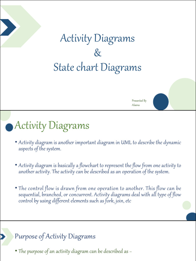 • An activity diagram is a flowchart of activities, as it represents the workflow among various activities. They are