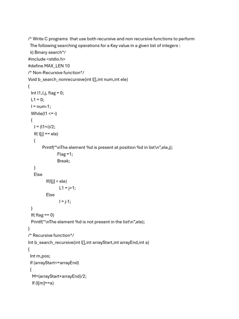 Printf(“\n[2] Binary Search using Non-Recursion method”);