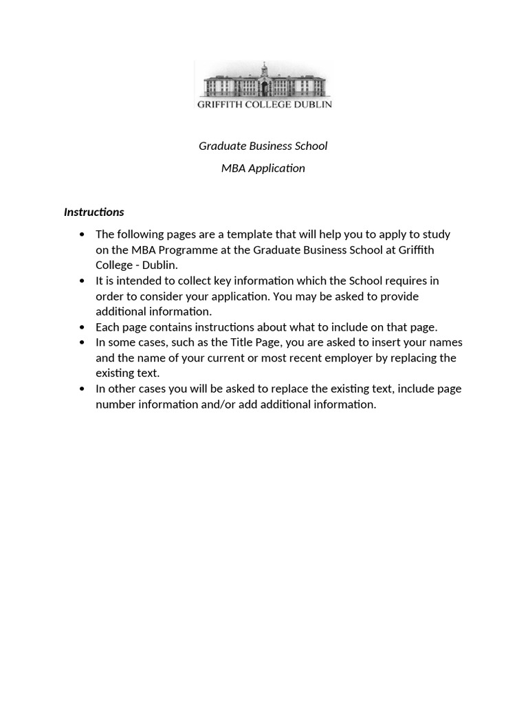 [This short template booklet is designed to help you to apply for the MBA