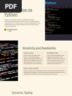 simplicity, readability, and versatility. Here's a brief overview of Python's key features: