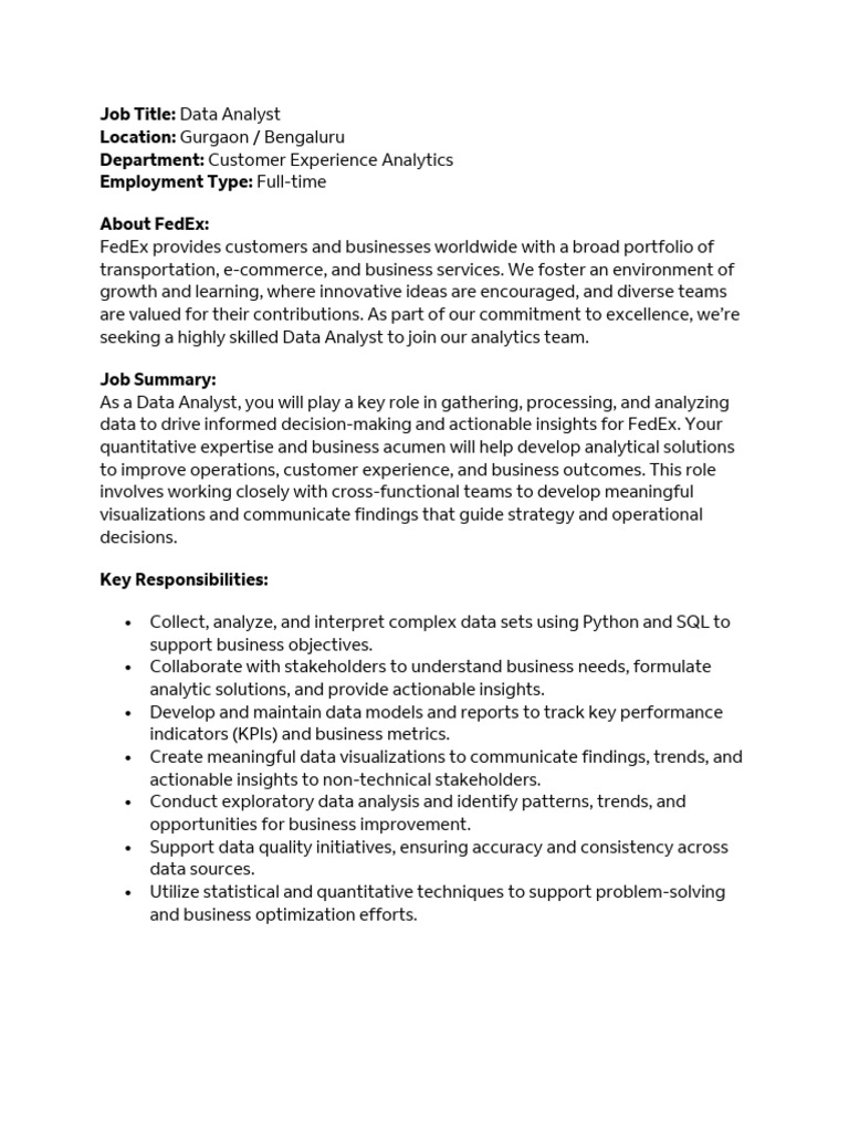 data to drive informed decision-making and actionable insights for FedEx. Your