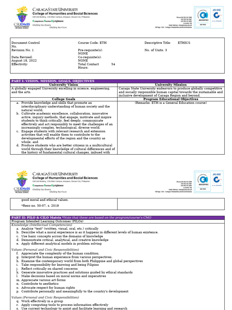 Ethics (ETH) deals with principles of ethical behaviour in modern society at the level of the person, society, and interaction with