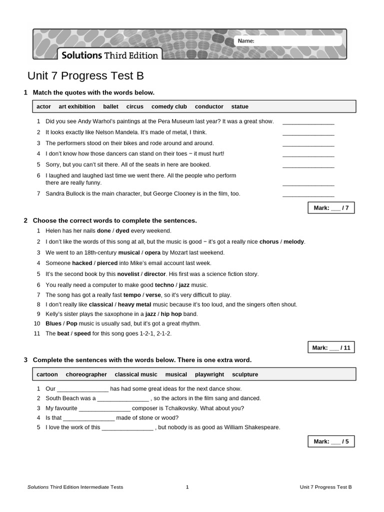Solutions Third Edition Intermediate Tests 1 Unit 7 Progress Test B