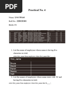 10. List all the employees except who works for department number 4 using less then(<>)