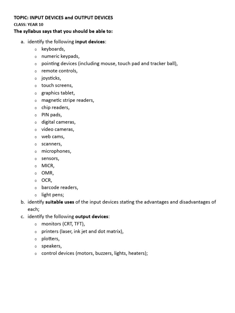 TOPIC: INPUT DEVICES and OUTPUT DEVICES