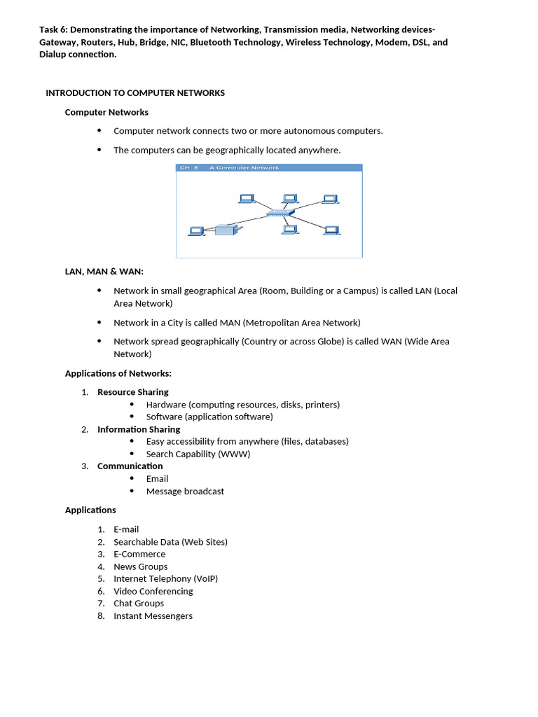 Task 6: Demonstrating the importance of Networking, Transmission media, Networking devices-