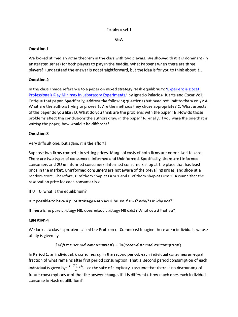 We look at a classic problem called the Problem of Commons! Imagine there are n individuals whose