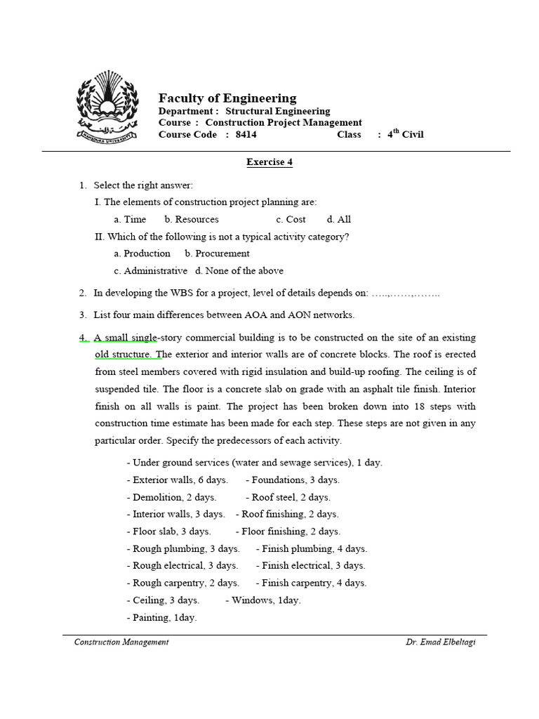 erection while the second part should wait for completion of formwork erection. Tabulate