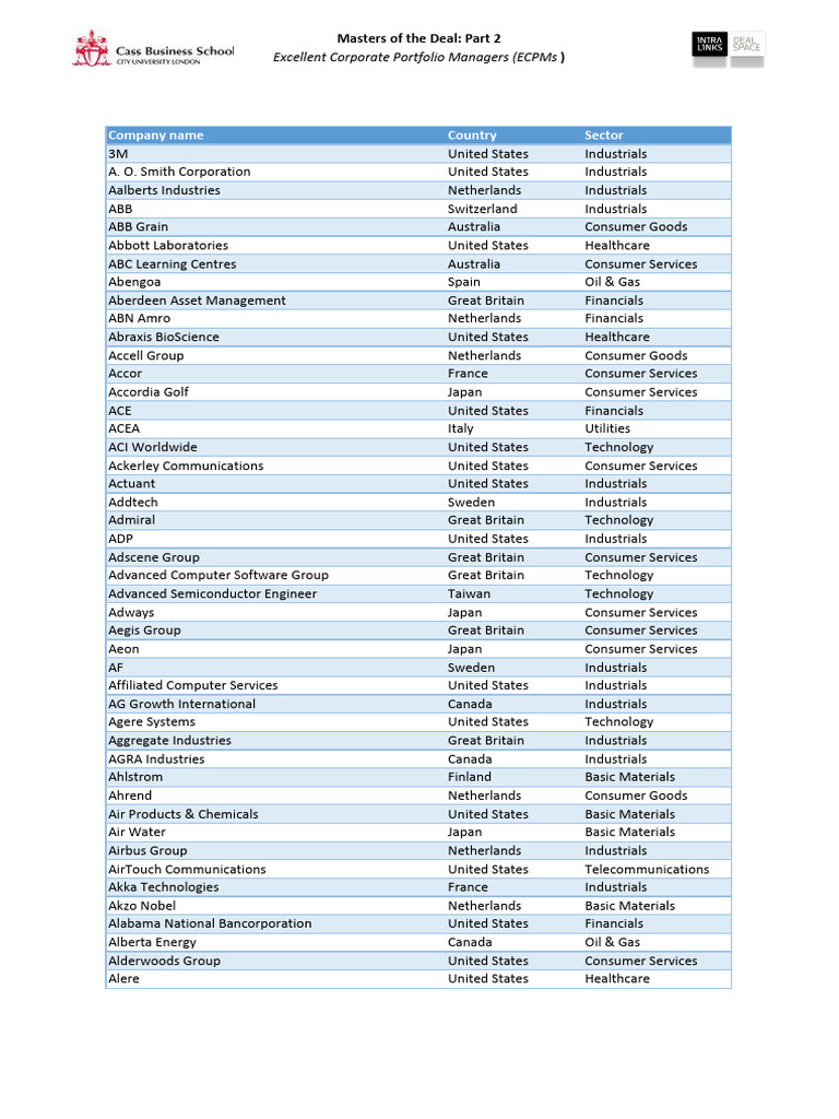 Company name Country Sector
