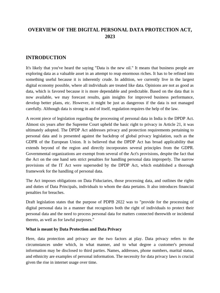 OVERVIEW OF THE DIGITAL PERSONAL DATA PROTECTION ACT,