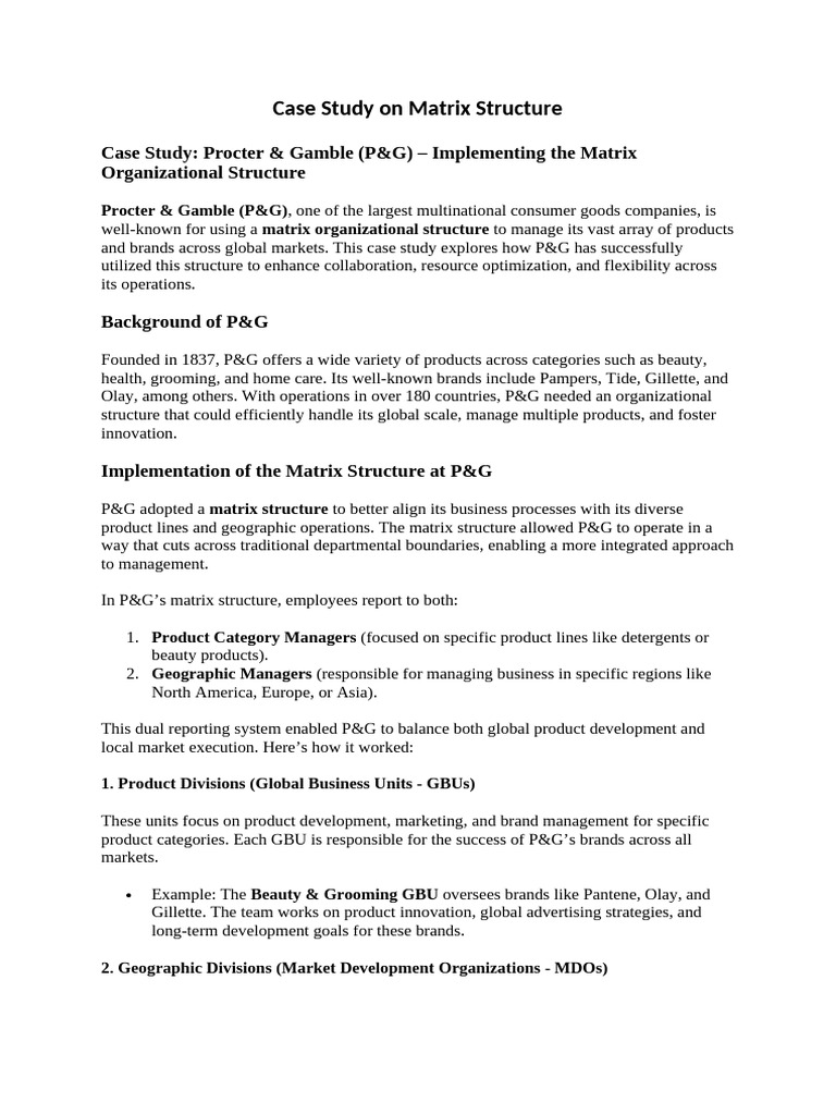 P&G adopted a matrix structure to better align its business processes with its diverse