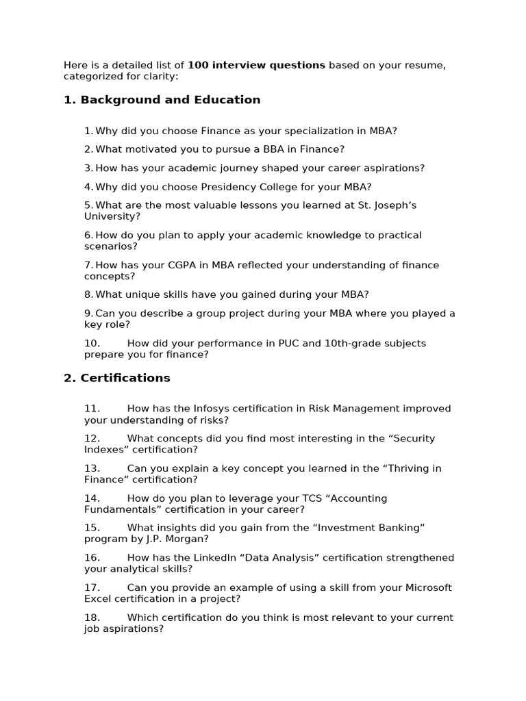 100 Finance Interview Questions