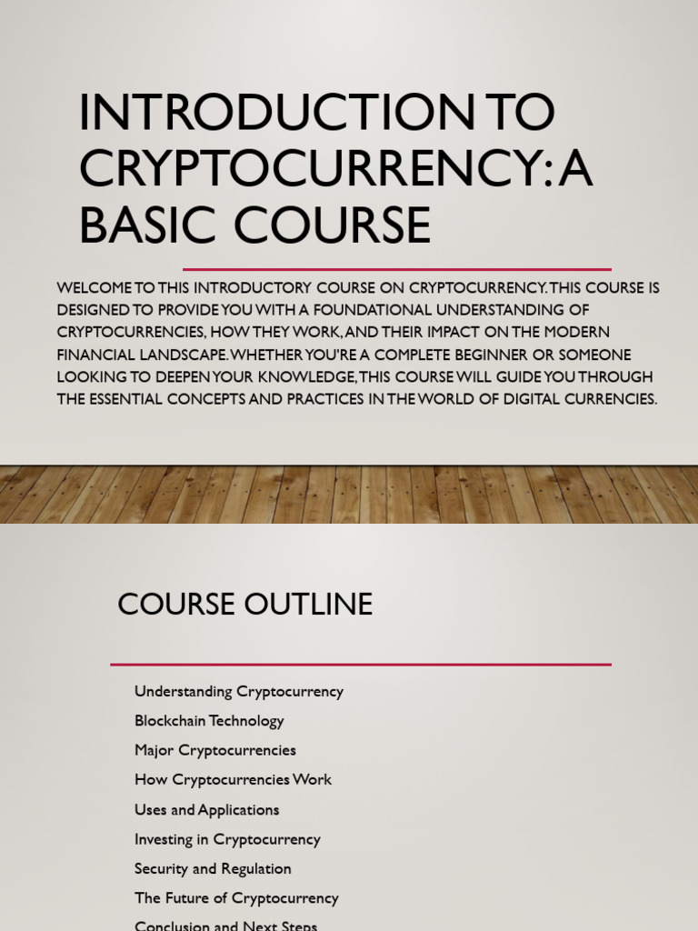 WELCOME TO THIS INTRODUCTORY COURSE ON CRYPTOCURRENCY. THIS COURSE IS