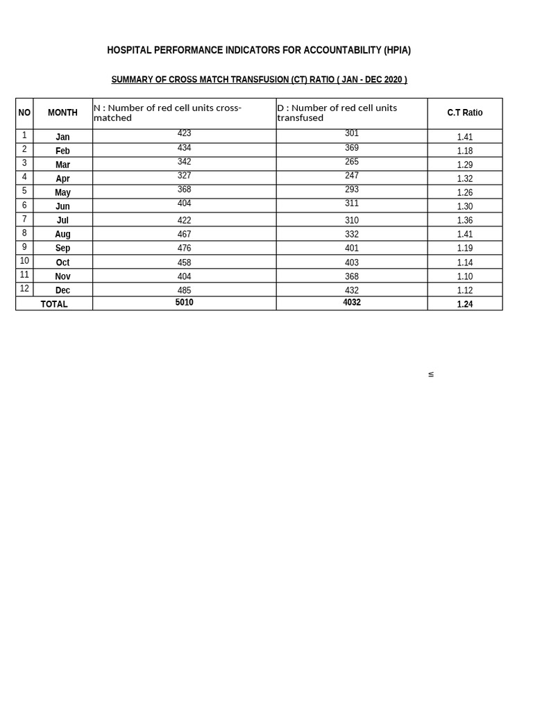 N : Number of red cell units cross- D : Number of red cell units C.T Ratio