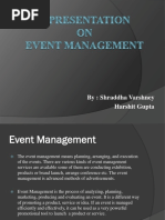 management as a profession. Event companies range from weekend entrepreneurs who do events as a hobby or sideline to well-