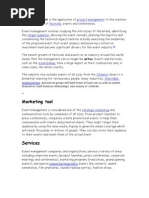 roots in the advertising and PR industries, the hospitality business, tourism, exhibits and expositions, and marketing. Many event