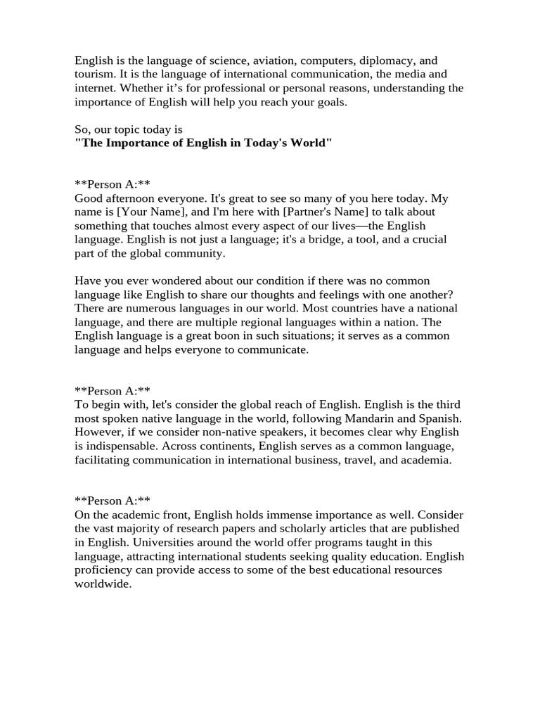 "The Importance of English in Today's World"