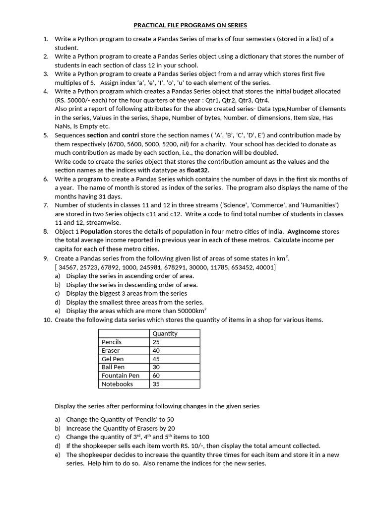 PRACTICAL FILE PROGRAMS ON SERIES
