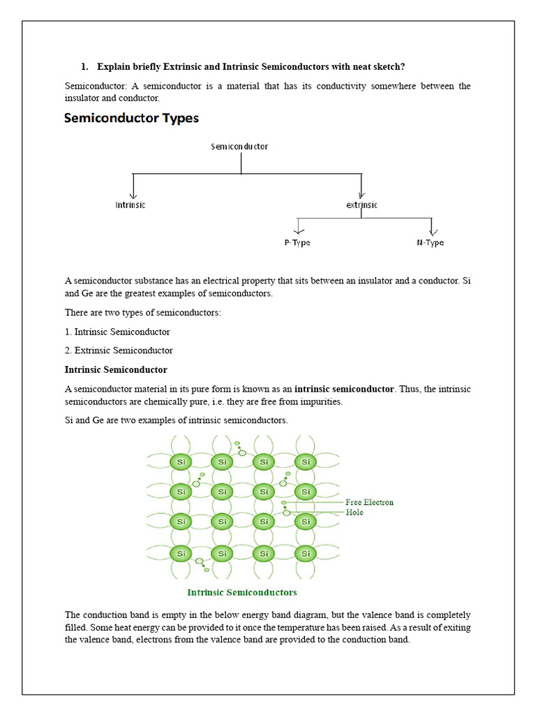1. Explain briefly Extrinsic and Intrinsic Semiconductors with neat sketch?