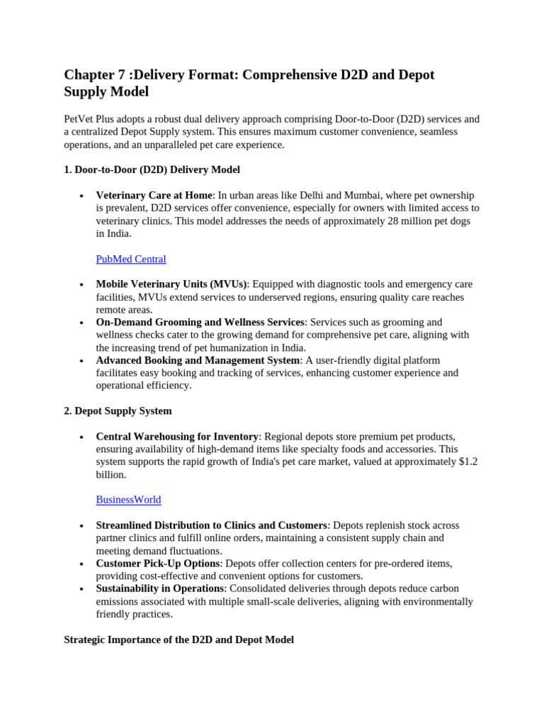 By integrating D2D services with a centralized depot system, PetVet Plus is well-positioned to