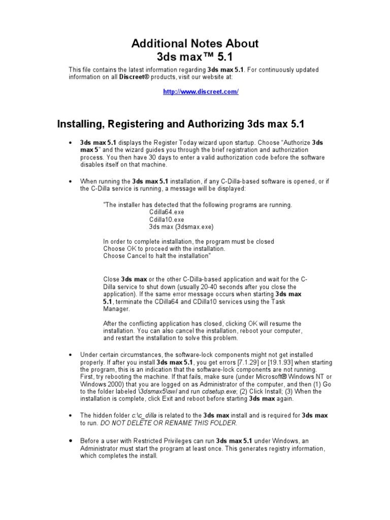 This file contains the latest information regarding 3ds max 5.1. For continuously updated information on all Discreet products, visit our website at: http://www.discreet.com/