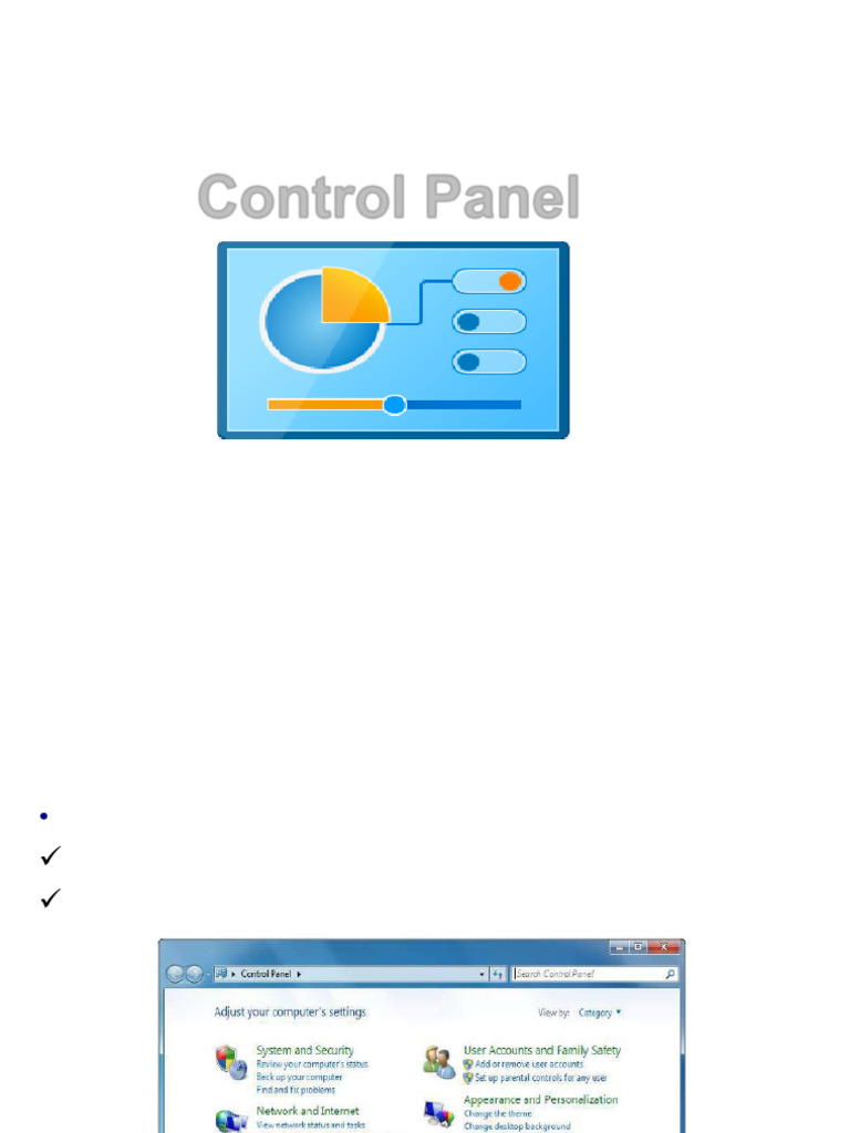 ✓ Or type a word Control Panel in the search box in Start Menu.