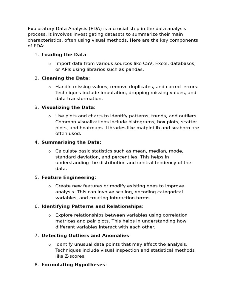 Exploratory Data Analysis (EDA) is a crucial step in the data analysis