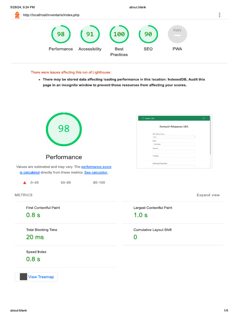 + There may be stored data affecting loading performance in this location: IndexedDB. Audit this