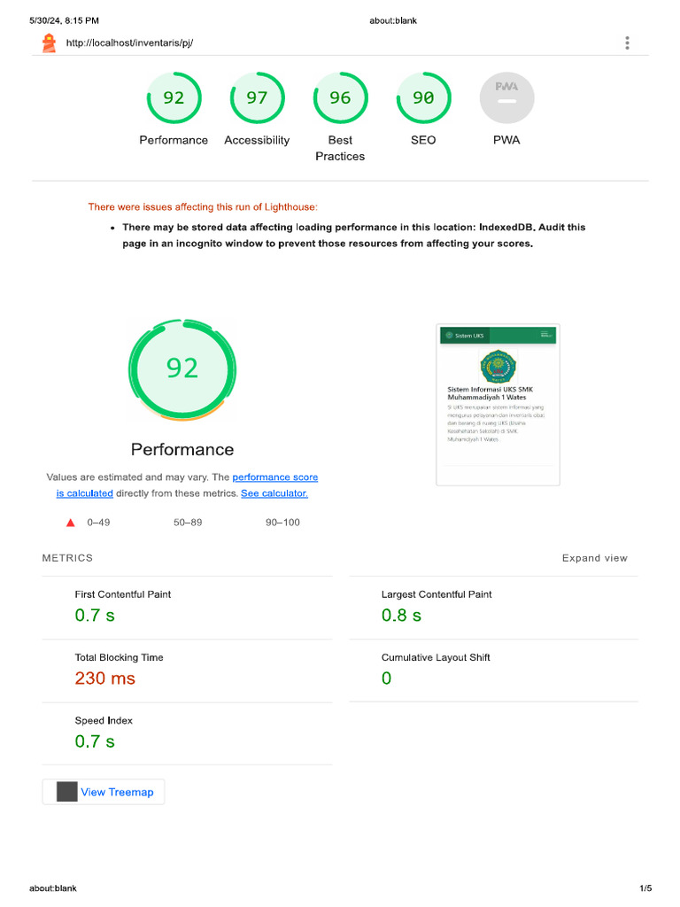 + There may be stored data affecting loading performance in this location: IndexedDB. Audit this