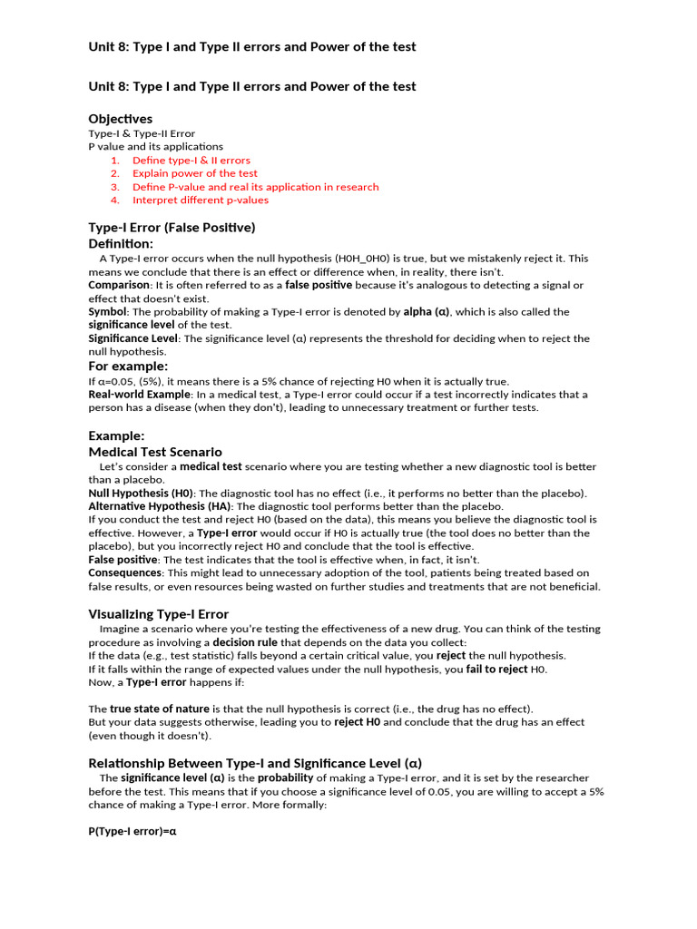 Type I and Type II The p-value is directly related to the probability of Type I errors, and must