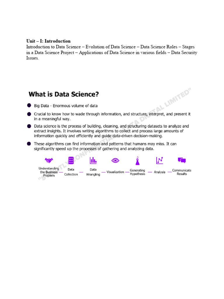 in a Data Science Project – Applications of Data Science in various fields – Data Security