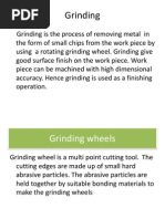 workpiece using a rotating wheel that has a surface composed of abrasive grains. Grinding is