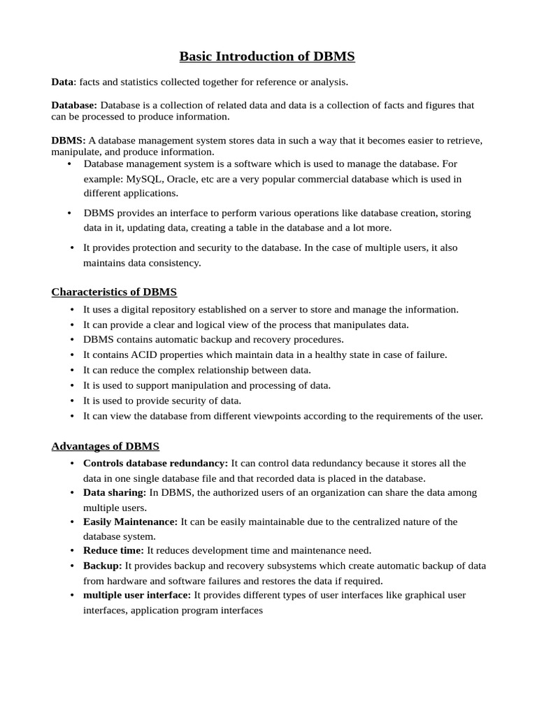 • Data sharing: In DBMS, the authorized users of an organization can share the data among
