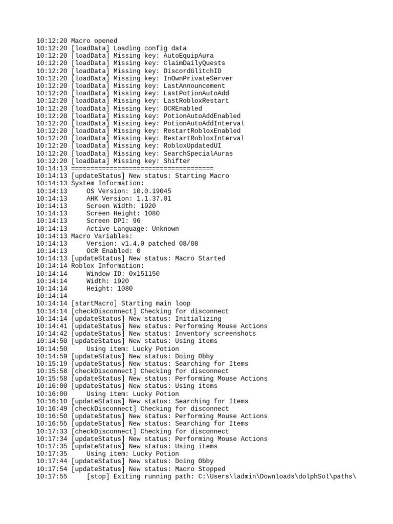 10:17:55 [stop] Exiting running path: C:\Users\ladmin\Downloads\dolphSol\paths\
