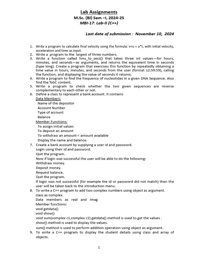1. Write a program to calculate final velocity using the formula: v=u + a*t, with initial velocity,