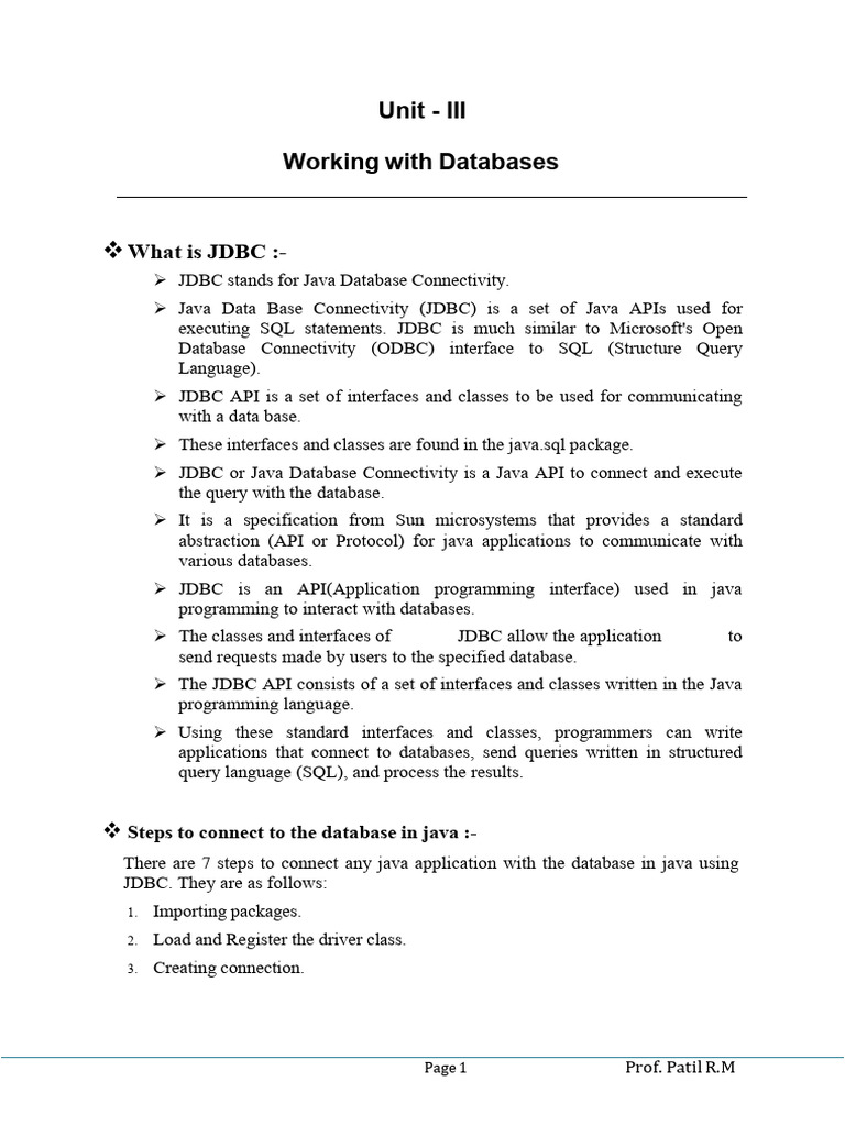 executing SQL statements. JDBC is much similar to Microsoft's Open