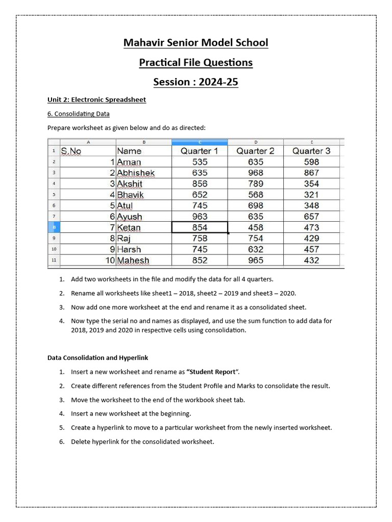 1. Add two worksheets in the file and modify the data for all 4 quarters.