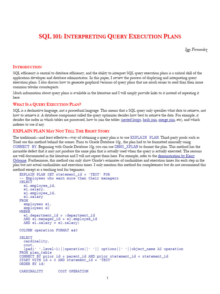 application developer and database administrator. In this paper, I review the process of displaying and interpreting query