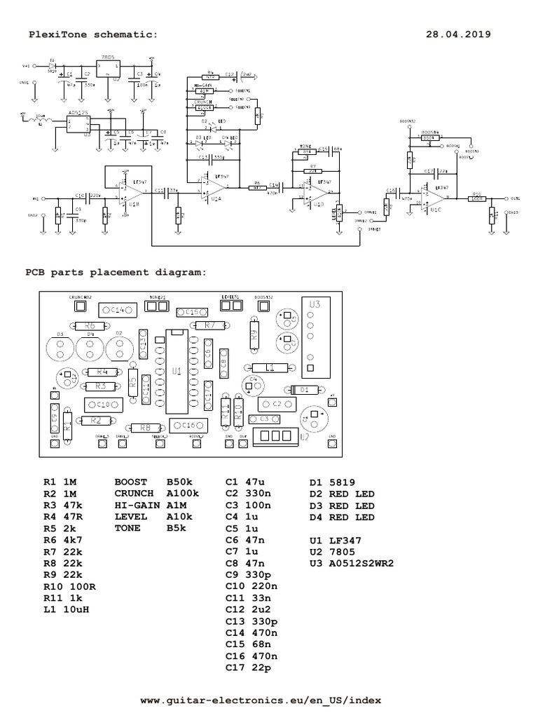 1M 2pcs. "R1 R2" Electrolytic capacitors: Footswitch DPDT/3PDT 3pcs.