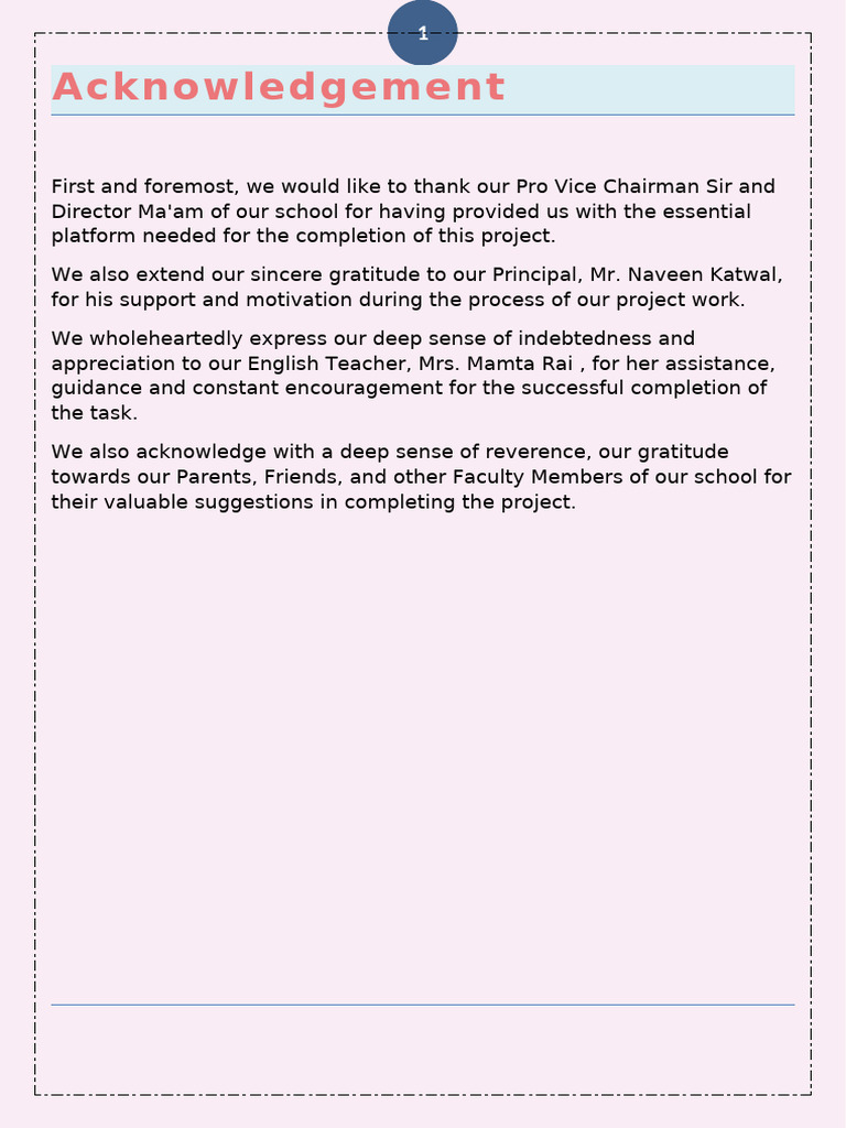 appreciation to our English Teacher, Mrs. Mamta Rai , for her assistance,