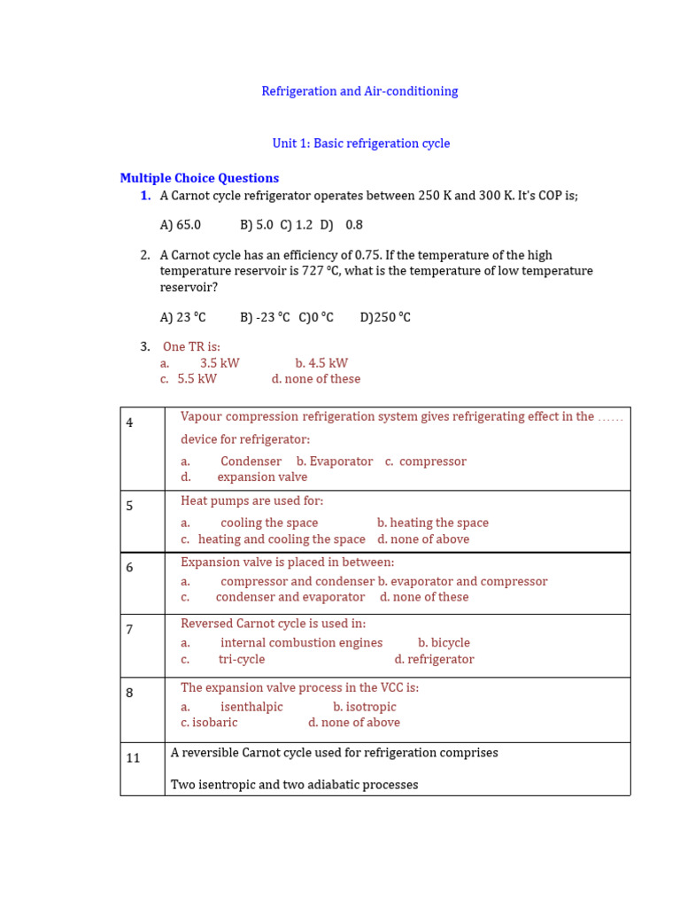 1 A 5 TR, R12 refrigeration plant has a saturated suction temperature of -50C. The