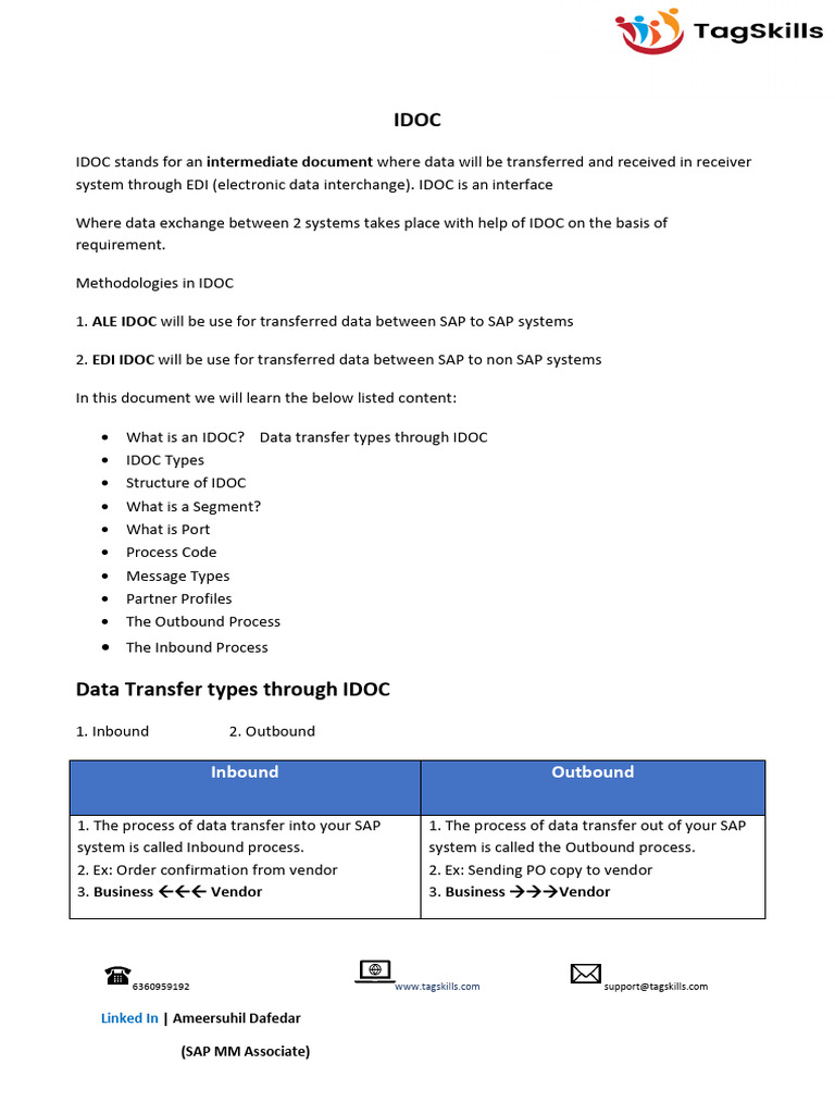 1. ALE IDOC will be use for transferred data between SAP to SAP systems