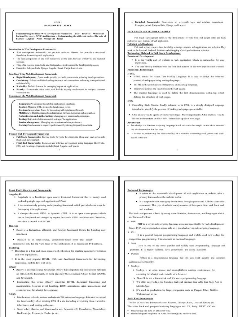 • Note: JavaScript is essential for all stacks as it is dominant technology on Web. framework, this section provides an overview of the basic components of most