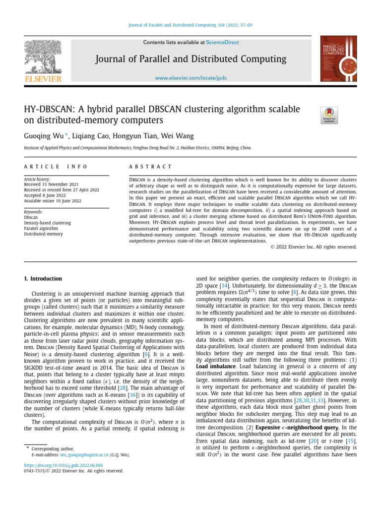 Received in revised form 27 April 2022 research studies on the parallelization of Dbscan have been received a considerable amount of attention.