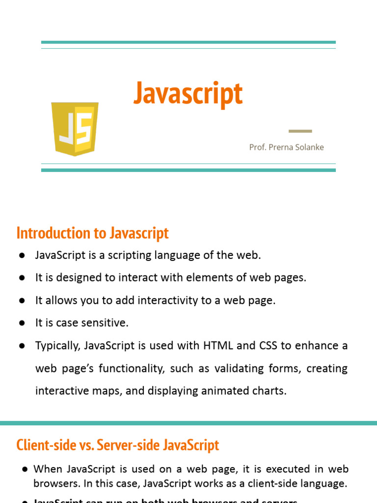 ● Typically, JavaScript is used with HTML and CSS to enhance a