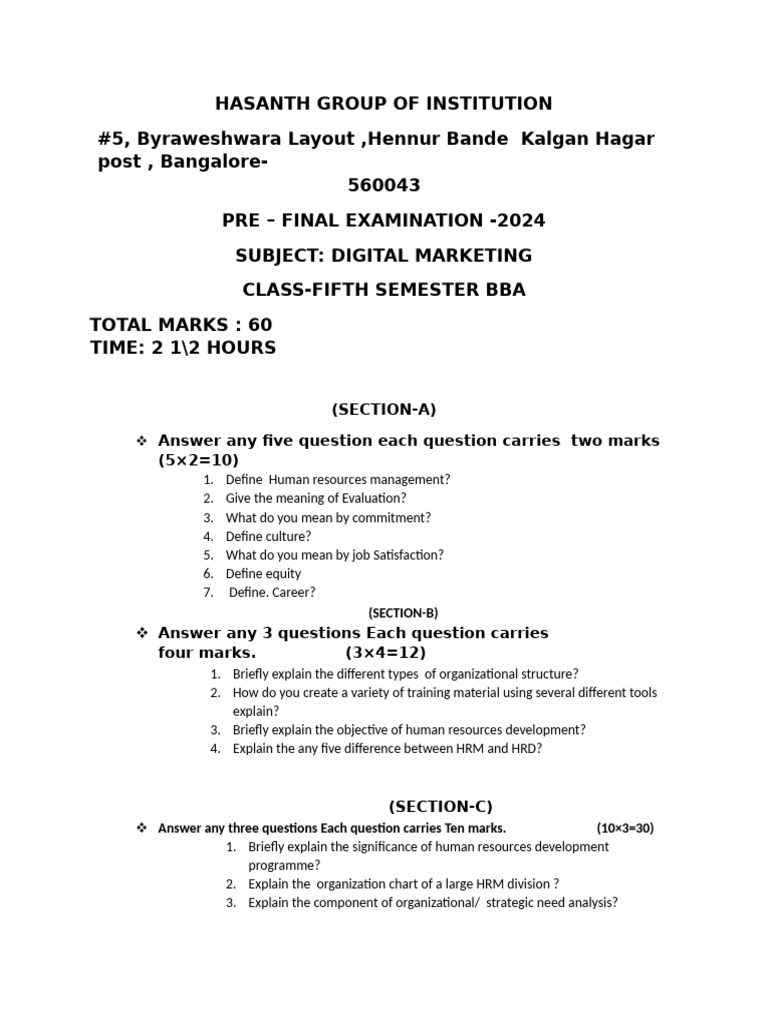 Answer any three questions Each question carries Ten marks. (10×3=30)