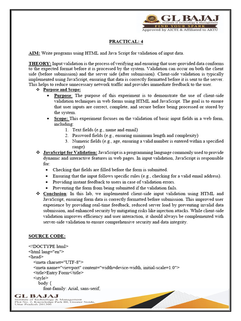 validation techniques in web forms using HTML and JavaScript. The goal is to ensure